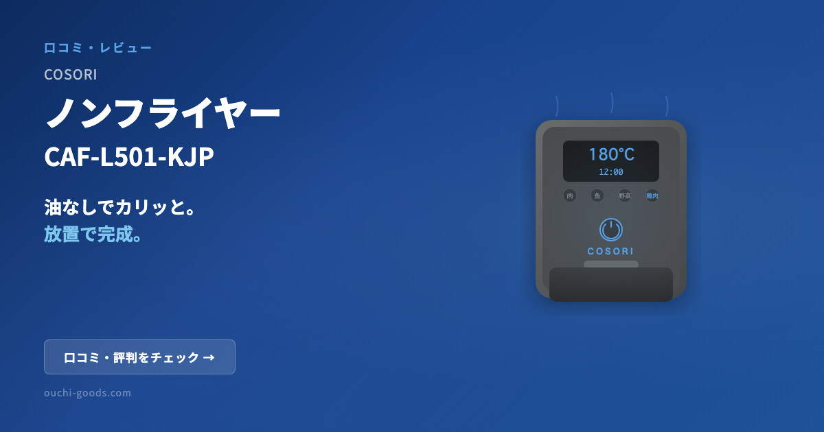 COSORI ノンフライヤー CAF-L501-KJPについて、ネット上の口コミ評判を徹底的に調査し、わかりやすくまとめました♪