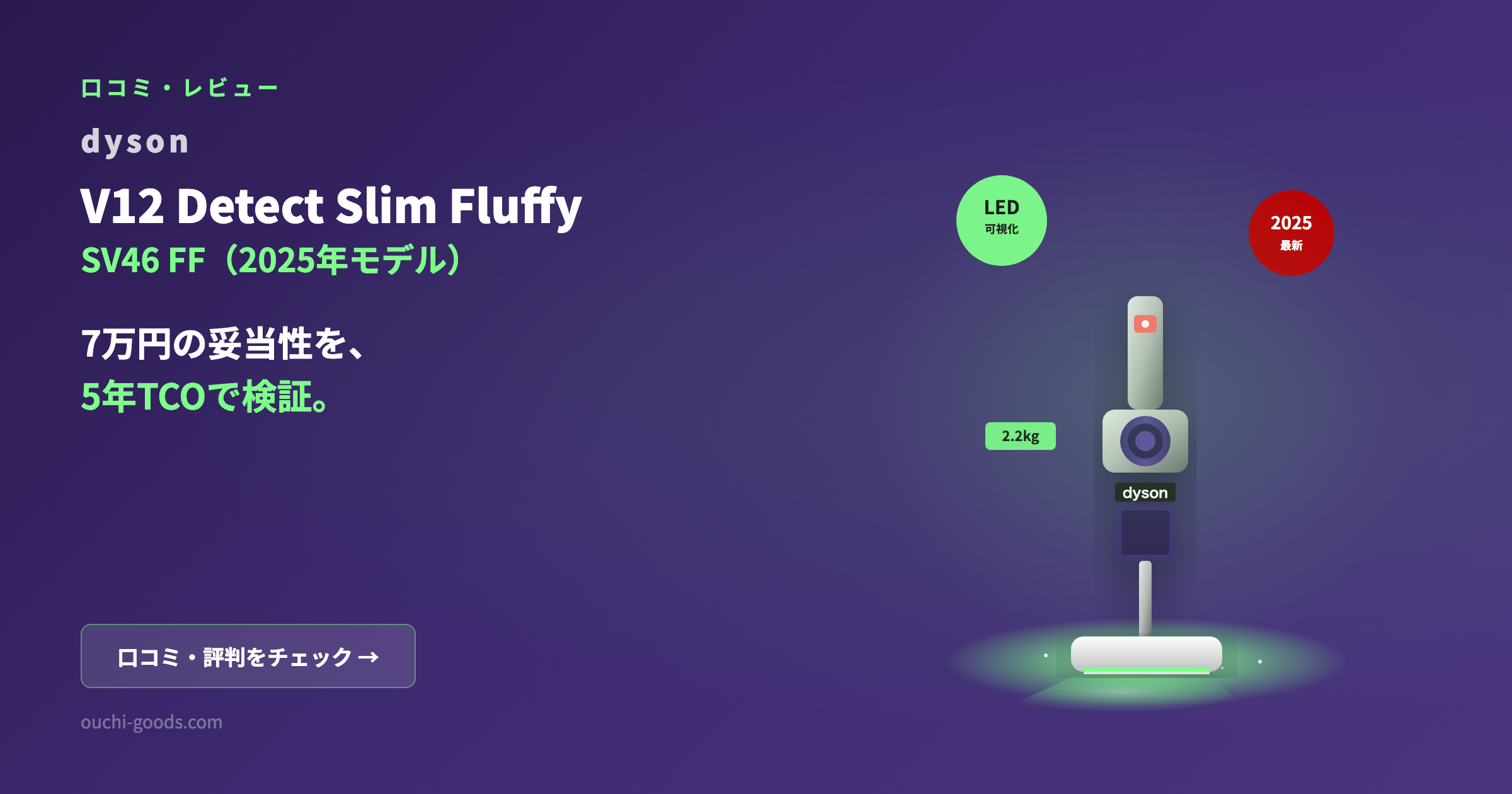 Dyson(ダイソン)V12 Detect Slim Fluffy SV46 FF(2025年モデル)について、ネット上の口コミ評判を徹底的に調査し、わかりやすくまとめました♪
