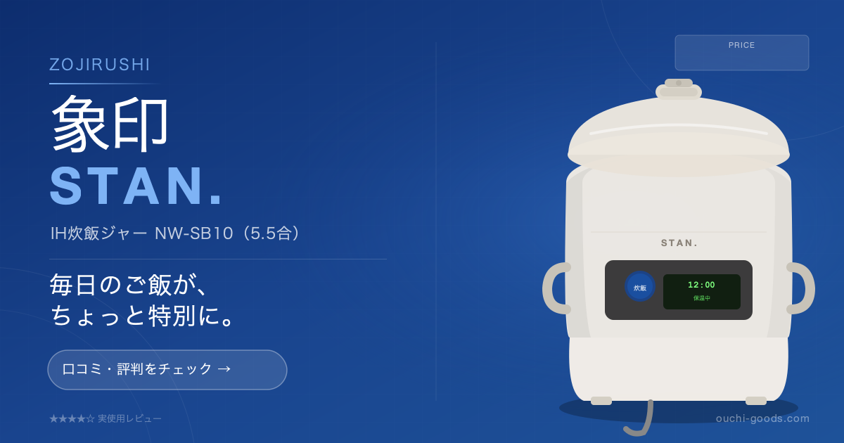 象印のIH炊飯ジャー STAN.(スタン)NW-SB10について、楽天市場・Amazon・SNSなど複数の情報源から口コミ評判を徹底的に調査し、わかりやすくまとめました♪